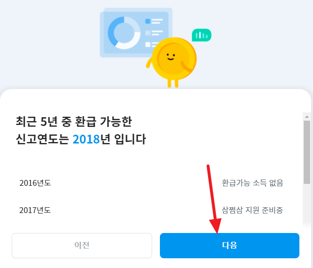그럼 환급이 가능한 신고연도가 언제인지가 나옵니다.
