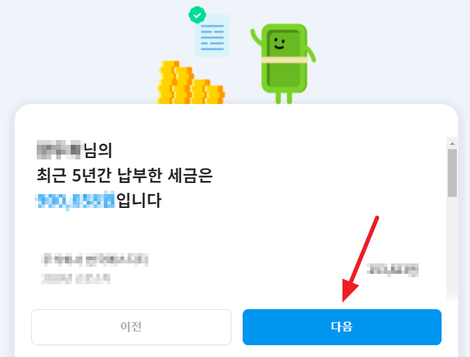그럼 5년간 납부한 세금이 얼마인지가 나옵니다.