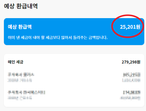 자세히 보기를 보면 예상 환급내역을 볼 수 있습니다.