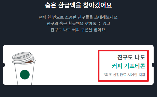 또한 이벤트도 하고 있는데요. 삼쩜삼을 친구에게 카카오톡을 통해서 알려주고 그 친구가 환급신청까지 하게 되면 친구도 나도 커피 쿠폰을 받을 수 있다고 합니다.