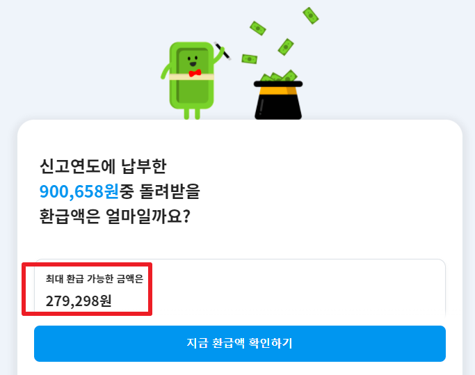 가능한 금액이 나오는데요. 최대 환급 가능한 금액이 나오게 됩니다.