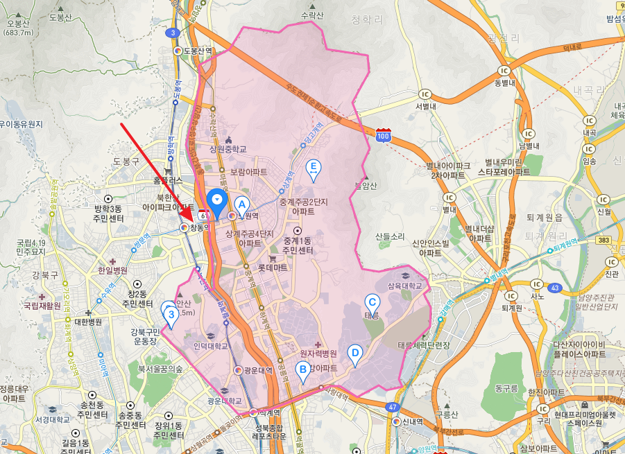 이유는 1988년 중랑천과 경원선 동쪽과 도봉동, 창동을 관할로 노원구가 되었으나 바로 다음 해인 1989년에 도봉동과 창동은 다시 도봉구로 돌아갔습니다.
