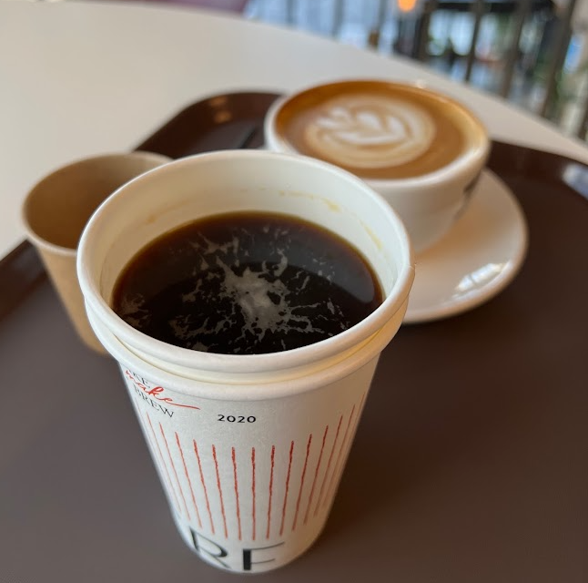아메리카노는 이중 종이컵에 주고 라떼는 매장 컵에 줍니다.