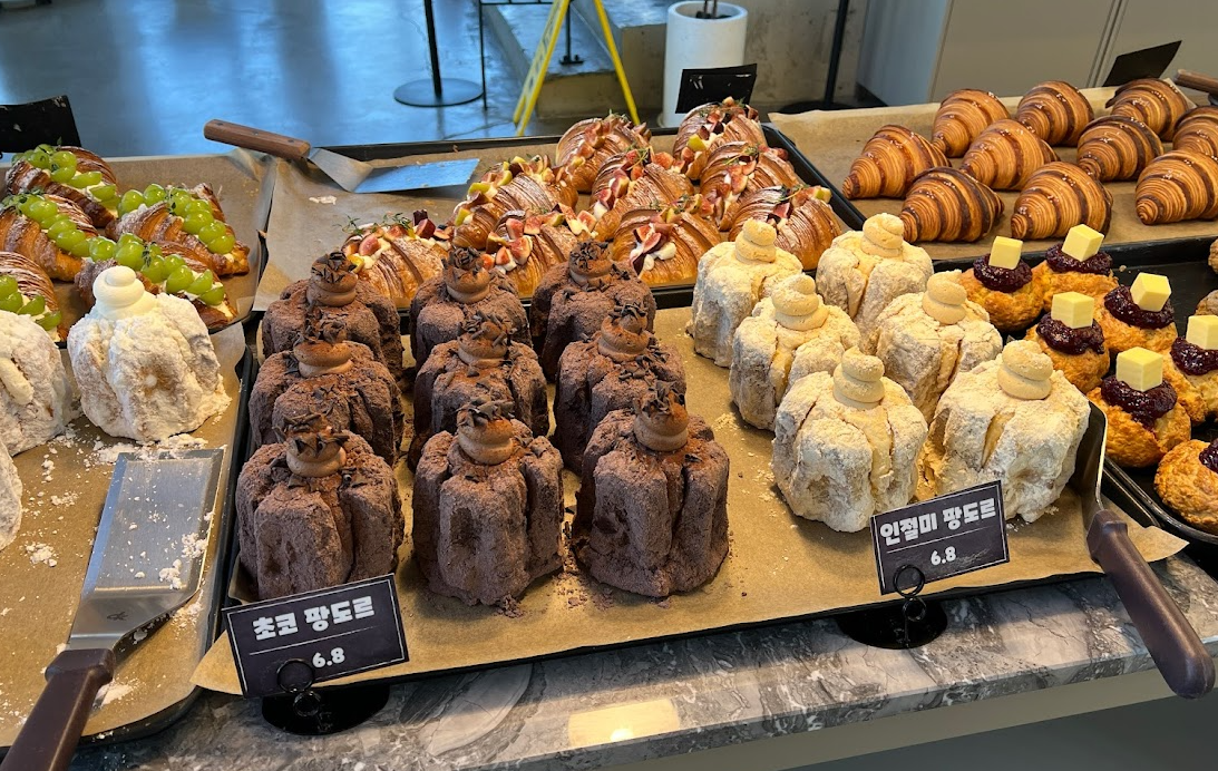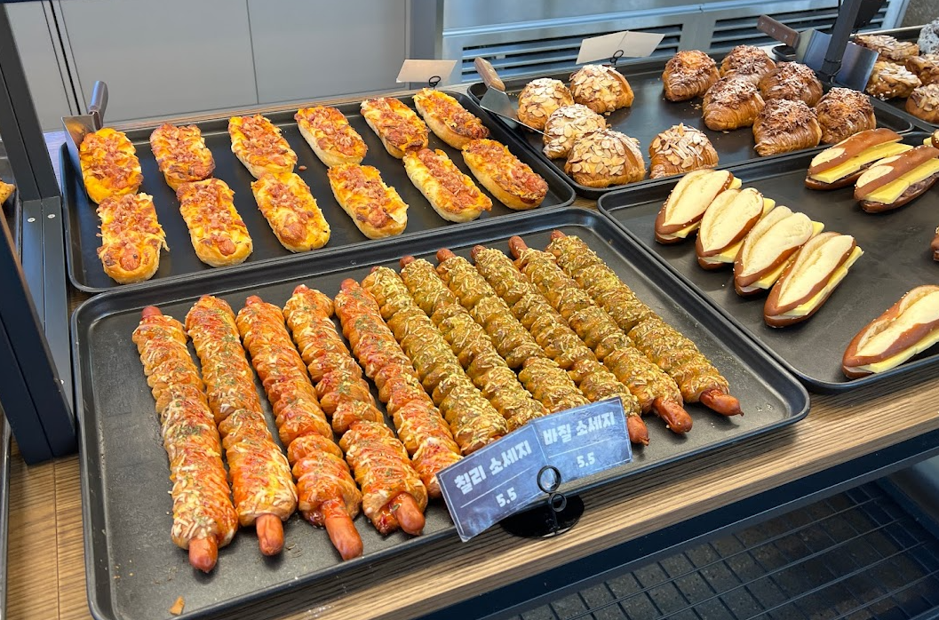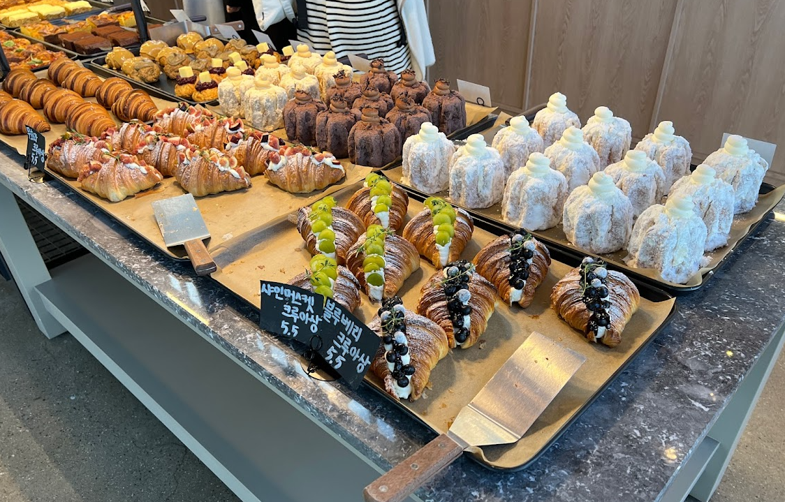 블루베리 크루아상 5500원, 샤인 머스켓 크루아상 5500원, 소금 크루아상 3800원, 마르게리따, 페퍼로니, 핫치킨 5500원, 치즈 핫도그 3800원, 아몬드 크루아상 4500원 카야 크루아상 4500원이네요.
