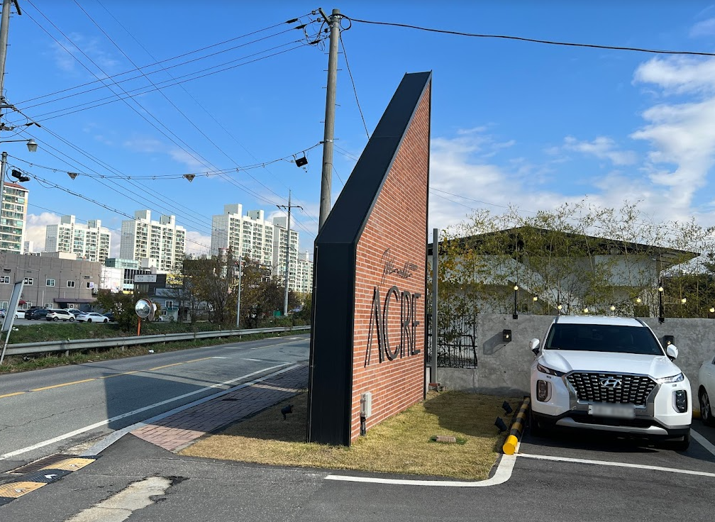 분평동 전자랜드 사거리에서 명성교회 쪽으로 들어가다가 바로 오른쪽으로 따라가면 멀리 ACRE가 보입니다. 에이커는 쉽게 1200평 정도를 가리키는 넓이의 단위인데요. 카페가 크다는 것을 표현하기 위해서 붙인 이름 같습니다.